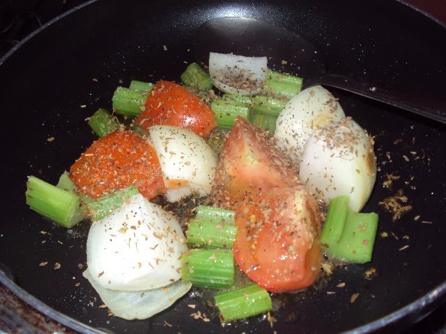1. Colocar en un sartén los vegetales con el aceite de oliva y salpimentar (agregar sal y pimienta), empezar a dorarlos, dándoles la vuelta poco a poco, hasta que se vayan marchitando.